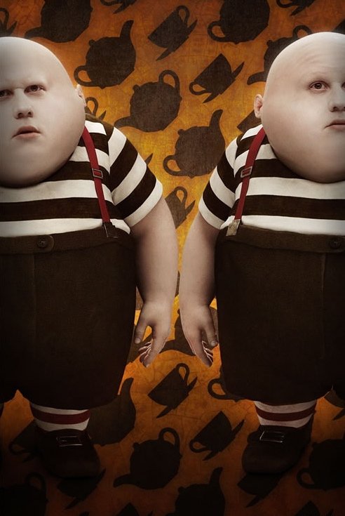 Det er allikevel med skuespillerne Burton denne gangen feiler så til de grader, og verst er det i arbeidet med selve Alice. En ting er at castingen av Mia Wasikowska er så feil som det kan få blitt – her er et totalt fravær av både sjarm og innlevelse, tydeligst i scener der hun ikke har dialog, men blir stående med reaksjonsmønster à la ihjelkokt fisk. Utseendemessig er hun akkurat like kjedelig, selv om Burton & co forsøker å gi henne noe karakter ved å male dype, blå ringer rundt øynene hennes. Bonham-Carter på sin side prøver tidvis, men som publikummer blir tolkningen bare en monoton repetisjon av roller vi har sett henne gjøre de siste fem årene. Det samme hadde jeg ventet å skulle tenke om Johnny Depp, men overraskende nok er det hans scener som tilfører filmen noe severdig. Riktignok ser vi bare konturene, for heller ikke med hans karakter byr manuset på spesielt mye spillerom. Allikevel er det en beherskelse i Depps etterhvert så velkjente maniske skuespill jeg ikke har sett siden hans glansdager, og som gjør at Mad Hatter blir filmens eneste virkelig nyanserte karakter. Depp gjør også sitt beste for å gi karakteren en personlighet utover galskapen, inkludert en merkelig sårhet manuset i seg selv ikke åpner for. Anne Hathaway skulle aldri vært med i denne filmen, akkurat som karakteren hun spiller. Det må sies å være en tydelig fallitterklæring når filmens kanskje eneste virkelig gode karakter er teselskapets March Hare Han er rett og slett gnistrende god, men med tanke på det filmatiske potensialet som ligger i Carrolls arsenal av gode karakterer, gjør det filmen bare enda tristere.
