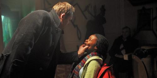 Obs! Følgende avsnitt inneholder spoilere. Det virker altså til å være en skyldfordeling mellom manus , regi og ujevne skuespillerprestasjoner i dialogens distanserende effekt. Men usannsynligheten sprer seg også til selve karaktertegningen og konfrontasjonsscenene. Jeg har lyst til å trekke frem tre av dem: Den første konfrontasjonen finner sted mellom Karin og asylmottakets bestyrer Ellen (Fumi Desalu-Vold), etter at førstnevnte blir overrumplet mens hun snoker omkring i mottakets korridorer. Ellen avslører sin lugubre fortid som offer for menneskesmugling ved å hviske sin historie til Karin, bakfra og lent over hennes ene skulder. Lett sadistisk, med andre ord. Det er veldig konvensjonsdrevet og føles noe umotivert. Det samme gjelder den andre konfrontasjonsscenen mellom Karin og hennes NAV-sjef William Moberg (Langhelle) i bilen hans. Plutselig skifter han totalt karakter, i nesten tegnefilm-aktig stil, mens vi sitter igjen og rister på hodet både over usannsynligheten i skiftet og i mangelen på karakteroppbygging som leder opp til dette. Den tredje konfrontasjonsscenen fungerer noe bedre. Obduksjonisten (Eindride Eidsvold) blir innkalt til avhør for sin forbindelse til den myrdede og den aktuelle mannsklubben, og leverer en kjølig og selvsikker, men lett svettende fremførelse, litt som Keyser Söze i De Mistenkte (1995). Eidsvold står uten tvil for den beste rolleprestasjonen i filmen.