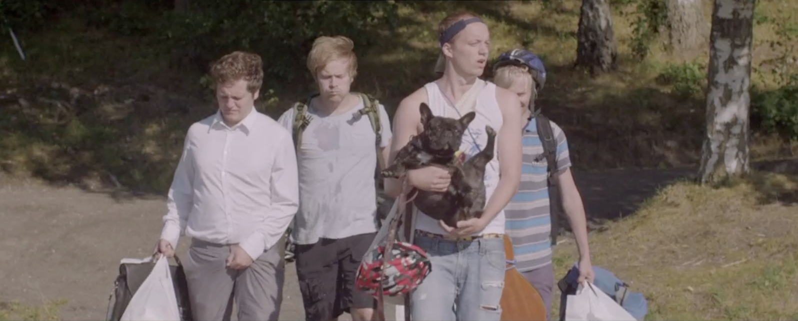 De følgende scenene med karakterpresentasjon – av keitete Jo, med hund, hjelm og sykkel; tøffe Lasse, som bor med mor og bror; kjedelige Mikkel, med tulleboksende far i sykkelshorts; og megler-junior Kristoffer, lenket til sin iPhone – gir gode riss av guttenes vennskap og dets innvikling i familie- og arbeidsliv. Etter fortekstenes sykkeltur, går de som et entourage uten leder i sakte film mot brygga, kløende på balla, med hund i hendene.