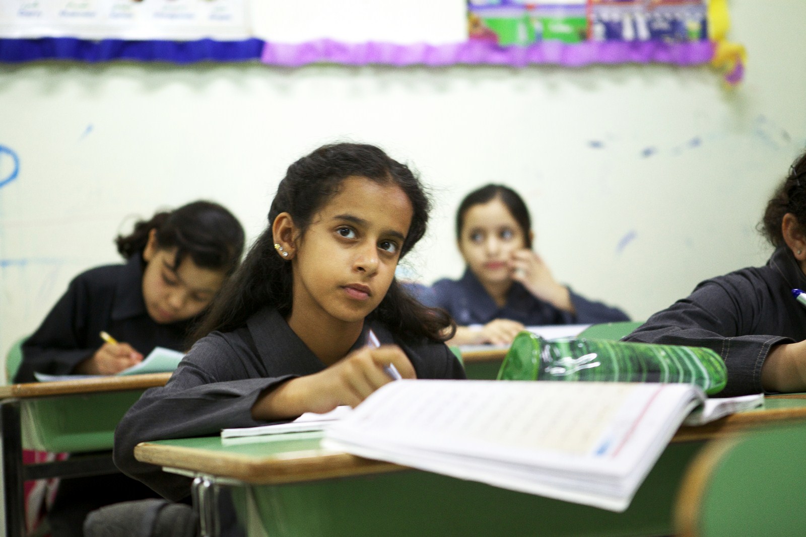 Handlingen i Den grønne sykkelen går inn og ut av offentlige rom, skoler og private hjem. Og inn og ut av hijaber og heldekkende kvinnedrakter, på en slik måte at det hele egentlig ser ganske praktisk ut. Det er et land full av støv, sol og sand, så selve klesplagget er jo ganske praktisk i seg selv. Likevel preges fremstillingen av draktene med en forsiktig, men dirrende undertekst; små sidereplikker setter Wadjda på plass som jente og minner henne om hvor grensene for hennes livsutfoldelse går. Men Wadjda lar seg ikke plukke på nesa: hun digger vestlig popmusikk, har Converse-sko til den tradisjonelle skoleuniformen og tar sin «straff» for overtrampet med hevet hode. Hun fortsetter med å jage den uoppnåelige drømmen. Drømmen om å skaffe seg en sykkel. Ja, hun er til og med villig til å utfordre påstanden om at «hvis jenter sykler kan de miste evnen til å få barn».