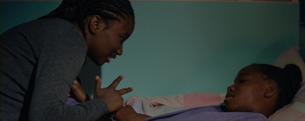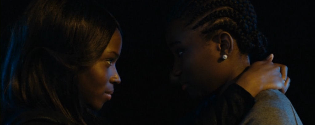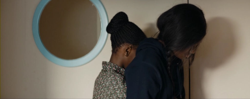 Girlhood er full av slike visuelle sammenligninger. Når Vic er hjemme igjen etter Rihanna-scenen på hotellet, beundrer hun kjolen hun brukte der i et speil, filmet mot en naken, turkisfarget vegg. Like etter ser vi søsteren, filmet fra omtrent samme vinkel, gjøre akkurat det samme. Dette er et av filmens mange innslag som viser det nære forholdet mellom de to søstrene, og hvordan den yngre ligger noen hakk etter, men i samme utviklingspor: Vic blir sjokkert når hun under danseoppvisningen oppdager at søsteren, sammen med en gjeng, forsøker å true til seg en veske.