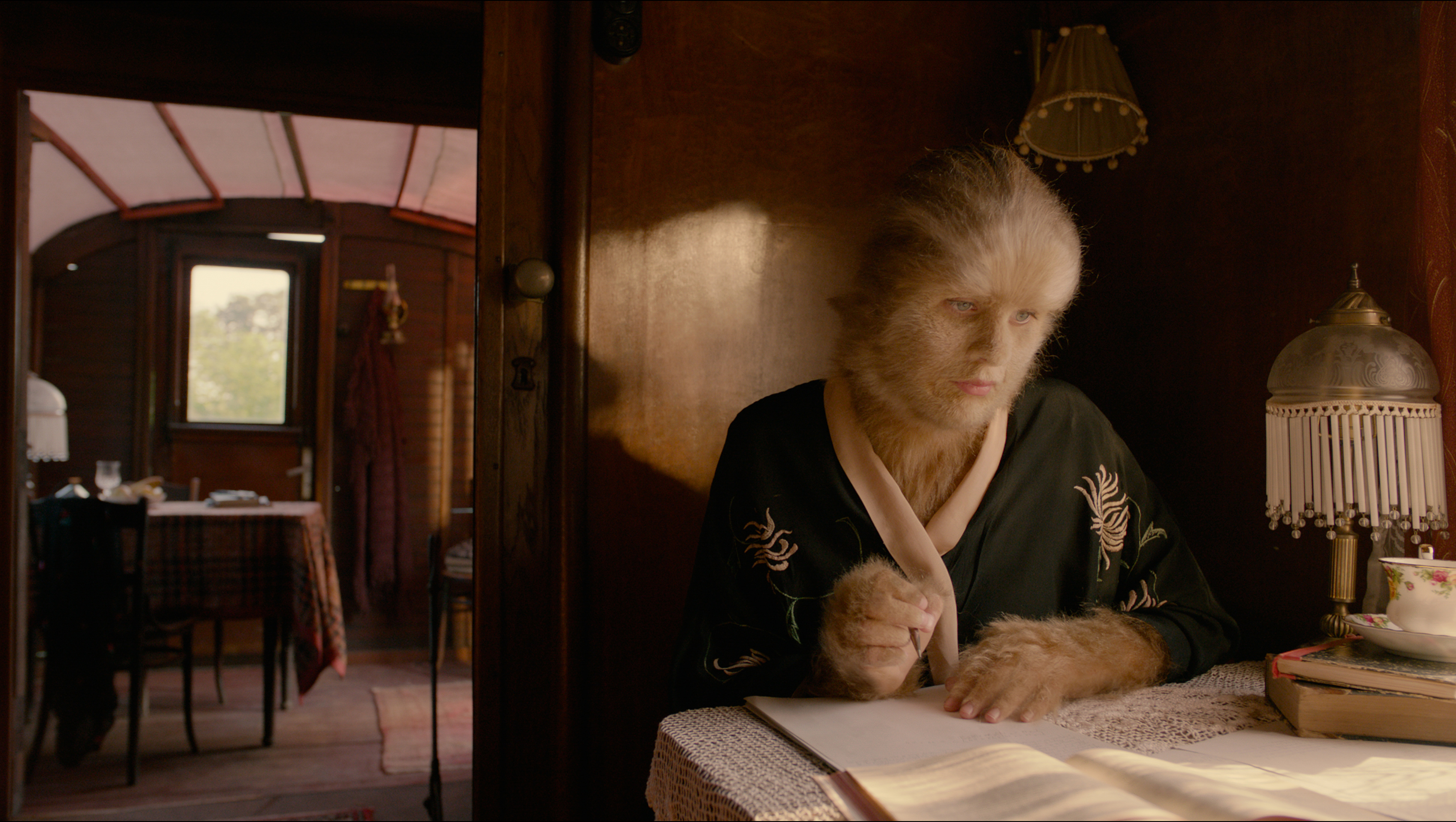 Den nest siste tagningen i Løvekvinnen er bildet av en umulighet. En tegning av hovedpersonens mor som smiler idet hun holder sitt nyfødte, pelskledte barn i armene. Det er faren som har laget tegningen.