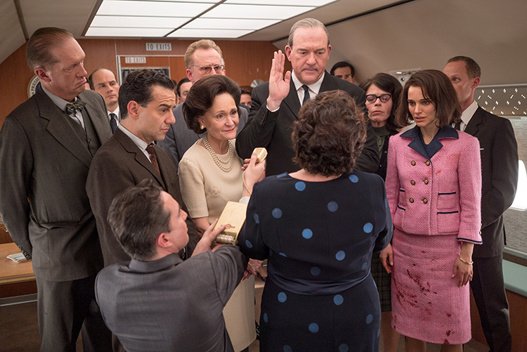 Det er nettopp denne tvungne dobbeltheten som utgjør tragedien i Jackie Kennedys historie som offentlig person. Fotograf Stéphane Fontaine (Elle, Profeten) inntar rollen som kameraet som observerer kameraene, og objektivets blikk på objektet; fremfor å selv se gjennom det fetisjiserende øyet, kan han se de mange øynene som har omskapt Jacqueline Bouvier i sitt bilde. En kjærkommen problematisering av filmens iboende voyeurisme. Denne cinematisk-ontologiske kompleksiteten – ved siden av de lange, elegante kjøringene i beste Paul Thomas Anderson-ånd – bør være mer enn nok til å posisjonere Fontaine som en av verdens fremste i sitt fag.