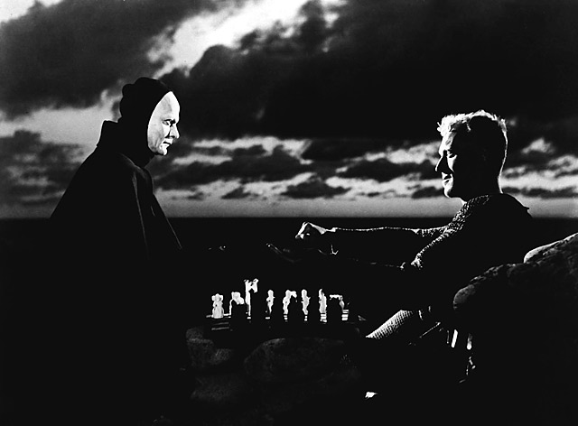 KH: Ridderen som prøver å vinne over døden ved å spille sjakk er en morsom illustrasjon, synes jeg. Scenen er et bilde på hvordan vi forsøker å håndtere ting som er helt utenfor vår kontroll ved å bruke et system, noe som har klare roller og regler og begrensninger. Vi stjeler vel egentlig bare Bergmans litt kanskje banale metafor, bruker den om igjen. Og det er kanskje en metafor med mye sannhet i seg, selv om den er banal.