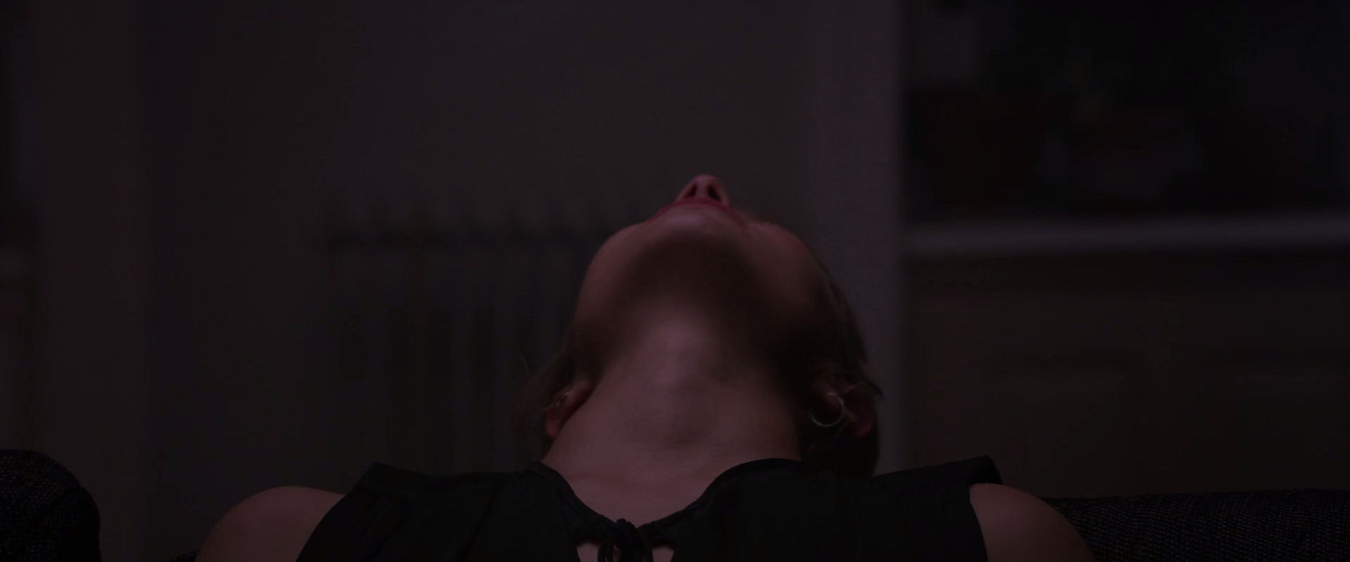 …hun ser på det ledige rommet: Ubevisst ønsker hun seg Anja der. Hun åpner munnen og puster relativt tungt. Hun skifter blikkretning, ser framfor seg, nesten i kamera (og legg merke til håndstillingen)…