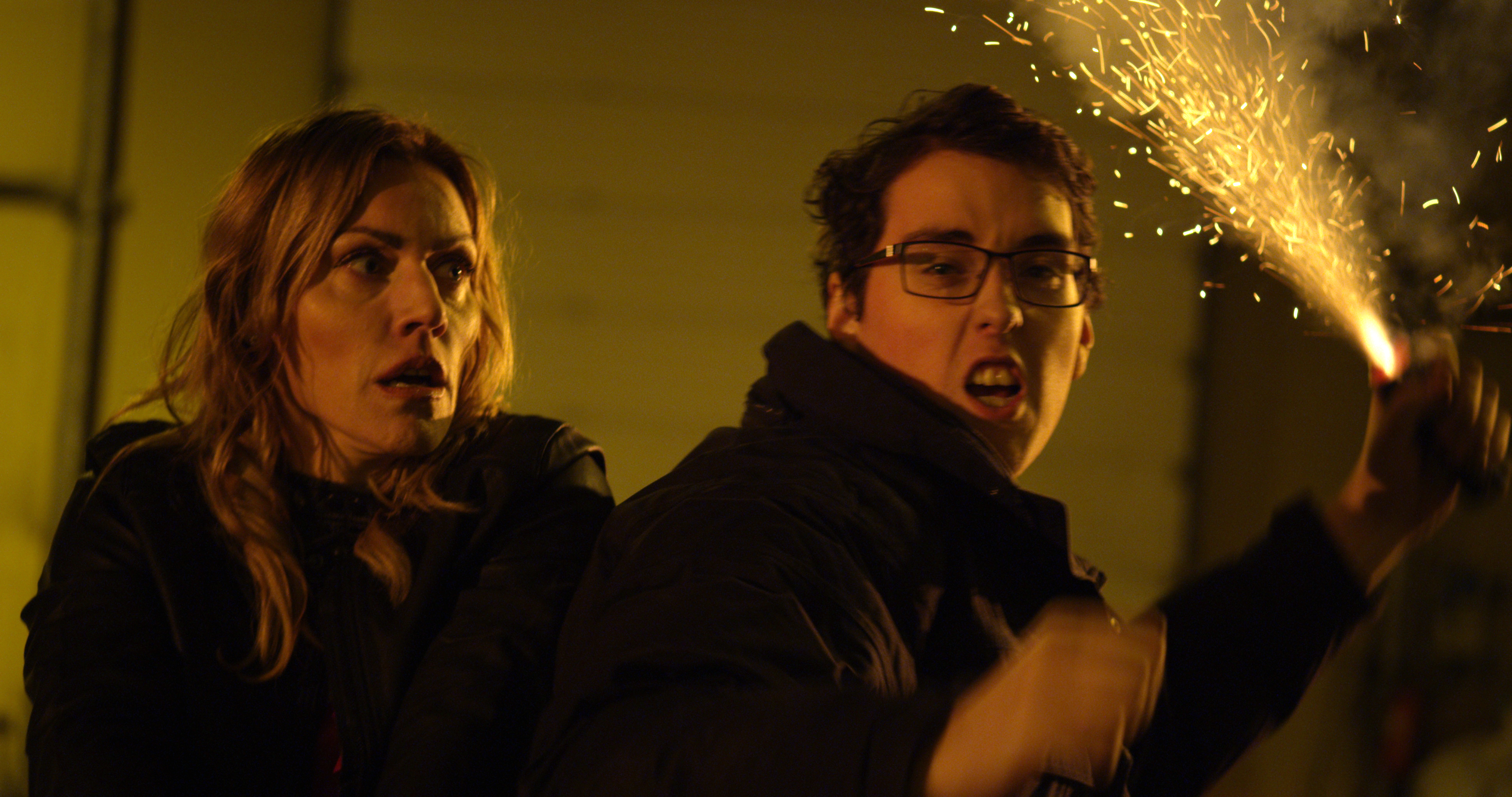Filmens første scene er et kort glimt av Preben “Prebz” Fjell sittende i en klippesuite i det vi senere forstår er kontorene til duoens produksjonsselskap Rakkerfilm. Han ser spørrende mot kamera, kaster et raskt blikk på døren bak seg, og setter seg så ved datamaskinen for å starte “filmen”. Logovignetten til Nordisk Film kommer opp på lerretet, og deretter kastes publikum inn i en dramatisk scene fra en lagerbygning, hvor Fjell og skuespiller Silje Torp agerer sivilkledd politi på jakt etter noen tvilsomme skikkelser vi aldri får se. Vignetten er en parodi av det grovkornede slaget, en ironisk tramping gjennom amerikanske thrillerklisjeer, komplett med dataanimerte geværskudd som kunne vært hentet rett ut av Twin Peaks: The Return (om det ikke var for at de her åpenbart er en dyd av produksjonsøkonomisk nødvendighet snarere enn et kunstnerisk valg).