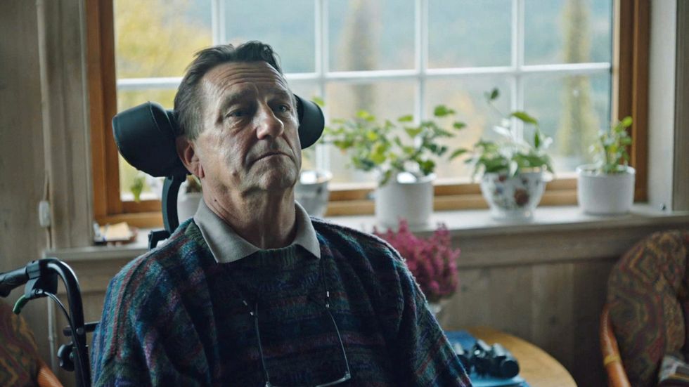 Et tilbakeblikk følger. Vi ser Kasper sammen med den kreftsyke moren. De mimrer om gamle bilturer over fjellet, med fisking og bål, og fordyper seg i detaljer; temperaturer og hvem som fikk hvilke tepper, en invitasjon for oss tilskuere til mer informasjon om familiebakgrunnen til Kasper og Georg. «Pass på pappa. Finn på noe gøy sammen», sier den døende moren, og kanskje det er dette minnet som får Kasper til å ombestemme seg. I neste scene river han presenningen av Moto Guzzi-sykkelen i garasjen. Filmen er for alvor i gang – vi skal ut på reise.