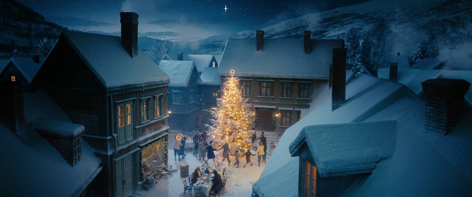 Når historien senere tar oss hjem til Julenissen, er også dette et hjem fylt til randen med kreative og spennende detaljer. Julenissen bor inne i et tre, med hyller oppover langs innsiden på stammen, helt opp til kronen, og alle hyllene er fylt med julegaver. Fra veggene på innsiden vokser det tresopper, og den vakre fasongen på soppene understrekes ved at lampene til Julenissen etterligner disse. Julenissen har mange kart – både et stort, oppslått og en egen vegg med hull for de ulike rullene. Også her understreker lyssetting og fargevalg en varm og innbydende stemning.