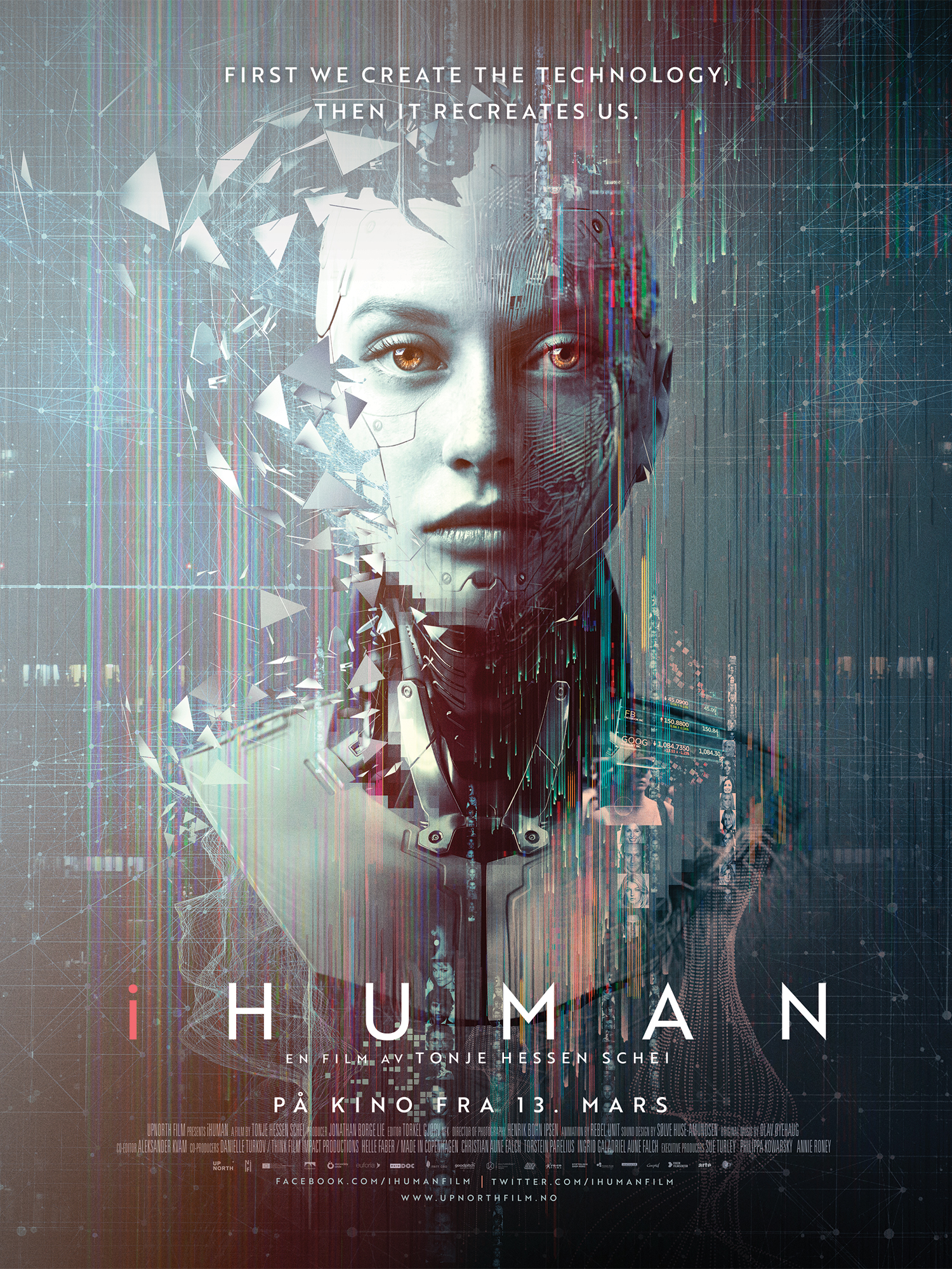 Kryssklipp til folkemengder i en asiatisk storby skutt i close-up med en zoomlinse som stilles inn og ut av fokus, som om noen overvåkes. En nyhetsstemme leser opp: «Kunstig intelligens algoritmer er her, men dette er berre byrjinga». Xi Jinping, Trump og Putin ankommer. Rytmisk tilbake til innledningsgrafikken, data i svermer, og en nyhetsstemme: «I KI-alderen er data den nye olja». Det zoomes inn mot bygningslogoene til Facebook og Google et sted i California: «Nokre få menneske i nokre få teknologiselskap styrer kva ein milliard menneske tenkjer på». Og: «Denne teknologien endrar kva det vil seie å vera menneske». Deretter suges kamera inn i noe som ser ut som et svart hull og på den andre siden blir det helt stille. Vi svever over en skyskraperby, deretter et boligområde. Tittelen: iHUMAN.