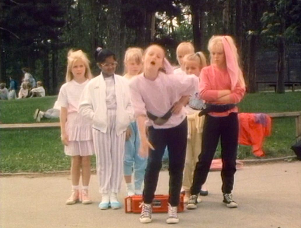 «Är du ägentligen skolmogen?», spør Katarina spydig når Ebba ikke gidder å finne seg i å være kamera-person, men stiller et betimelig spørsmål om ikke det å mime til musikk og late som man er en annen, egentlig er ganske teit. Av responsen skjønner hun at en som leker med «skrot-Phillip» (min beskrivelse) i skogen og bygger hytte av brukte gjenstander, ikke kan være en del av gjengen. Den slags aktiviteter hører hjemme i barnehagen, skal vi tro Katarina.