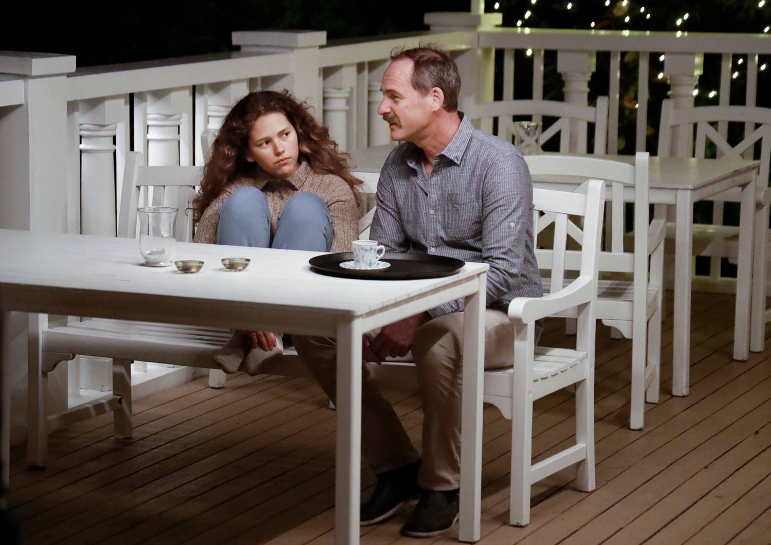 Dette blir forsterket i en annen tidlig scene, hvor far og Une oppfordrer Cecilia til å bli med å bade. Cecilia nøler, og da hun kommer ned til vannkanten, dveler kameraet ved føttene hennes og vannet som vasker over dem. Filmen ymter også om at Cecilia og farens forhold har blitt anstrengt etter morens død. De takler sorgen på ulikt vis, og de har vanskelig for å forstå hverandres reaksjoner. Cecilia prøver ved flere anledninger å fortelle faren om etterforskningen hun og vennene driver med, men han nekter å tro at dødsfallet var noe annet enn en ulykke.