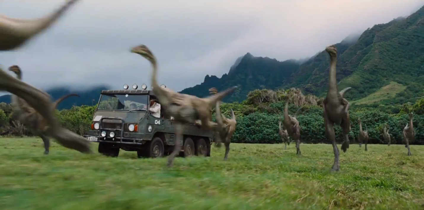 Men fra og med produsent Spielbergs navn flasher over skjermen, skifter traileren både tone og visuell egenart til noe betydelig mer lovende. Plutselig er vi tilbake i det jordlige, litt blålige skjæret som preget The Lost World: Jurassic Park mens vi følger en gruppe mennesker i nærkontakt med natur og dinosaurer. Først her føler jeg at den angivelige respekten og kunnskapen om det eksisterende fiksjonsuniverset kommer til sin rett. Også på musikksiden, der en diskret pianovariasjon over John Williams‘ berømte hovedtema hviler i bakgrunnen.
